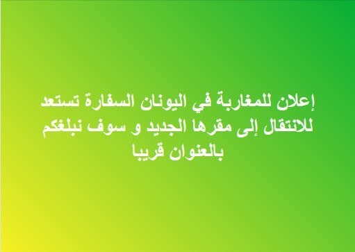 إعلان للمغاربة في اليونان السفارة تستعد للانتقال إلى مقرها الجديد و سوف نبلغكم بالعنوان قريبا Bladi Admin posted on منذ 8 سنوات 1,286 views مقالات إعلان للمغاربة في اليونان السفارة تستعد للانتقال إلى مقرها الجديد و سوف نبلغكم بالعنوان قريبا ambassade YOUR REACTION? 0 AWESOME! 0 NICE 0 LOVED 0 LOL 0 FUNNY 0 FAIL! 0 OMG! 0 EW! Facebook Conversations