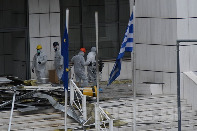 وكان الانذار فى صفوف القضاء بعد الهجوم بالقنابل خارج محكمة الاستئناف فى اثينا.
