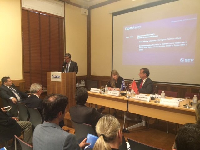ترأس سفير المغرب باليونان السيد سمير الدهر ندوة بمقر الاتحاد اليوناني للمؤسسات ورابط الأعمال والصناعة SEB حول خلق شراكات في عدة مجالات خاصة بالتنمية الإقتصادية وذالك في نطاق تقوية العلاقات الثنائية بين المغرب و اليونان.