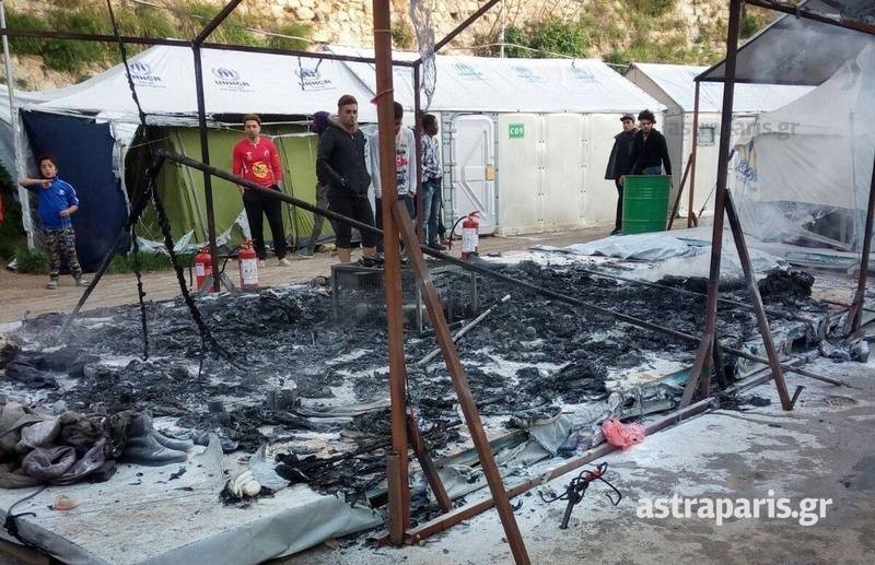 Το περιστατικό συνέβη περίπου στις 7.30, με τις πληροφορίες να αναφέρουν ότι έγινε καβγάς μεταξύ Μαροκινών και Ιρανών, ενώ κατ΄ άλλους την σκηνή την έκαψαν οι Μαροκινοί χωρίς να έχει προηγηθεί καβγάς.