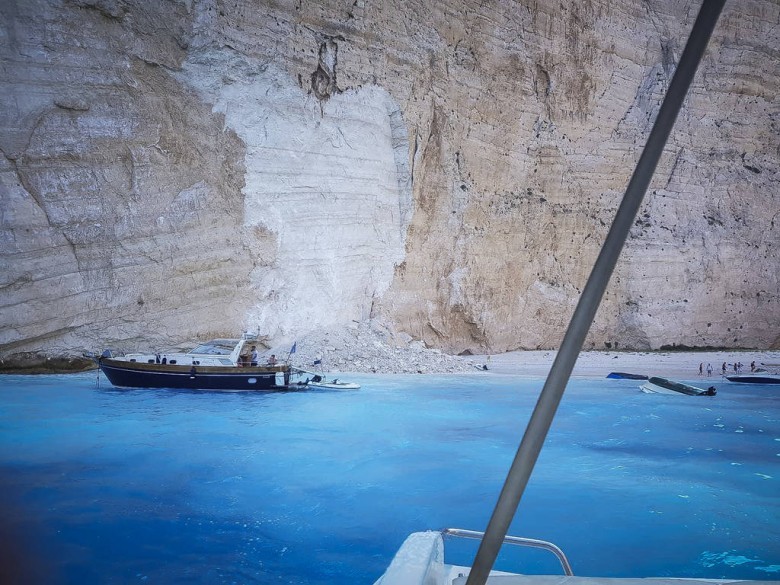 انهيار جبلي على شاطئ زاكينثوس حجم الصخور التي تصب في البحر، وسحابة غبار وموجة تسبب إلى الإطاحة بالسفن الصغيرة.وإصابت سبعة أشخاص.
