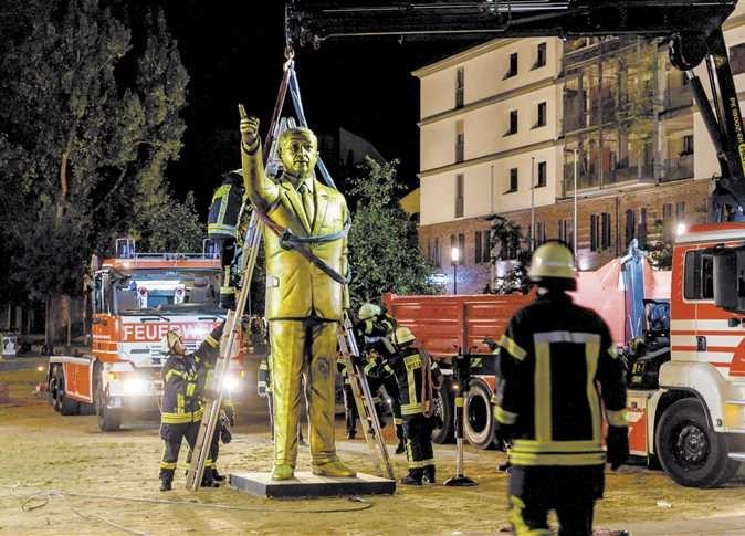وقالت وسائل إعلام ألمانية إن فرقة إطفاء قامت بإزالة التمثال وحملته على شاحنة إلى مكان لم يتم الإعلان عنه.